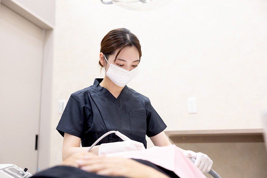 歯科衛生士と連携したチーム医療で、患者さまの生涯にわたるお口の健康づくりをしっかりとお手伝いさせていただきます。