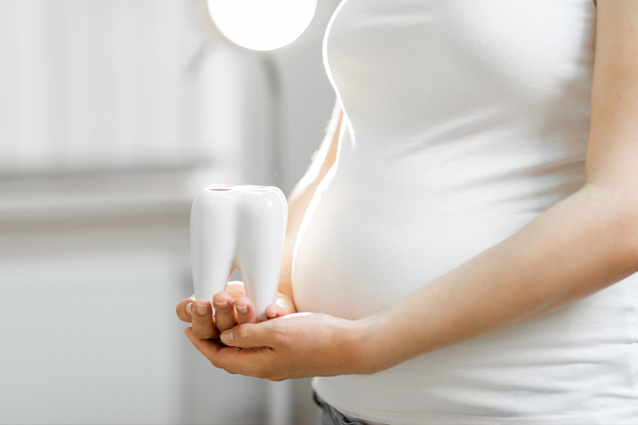 ホルモンの影響により、歯茎にコブのような膨らみができる症状が出る場合があります。ほどんどが良性で産後に自然と消えていきますが、もし気になる症状がありましたら、お気軽に当院へご相談ください。